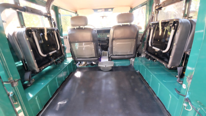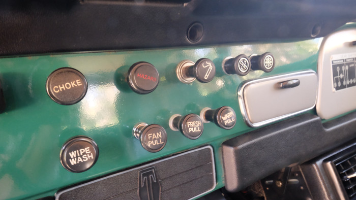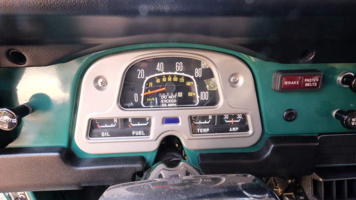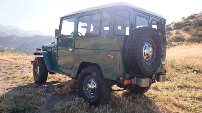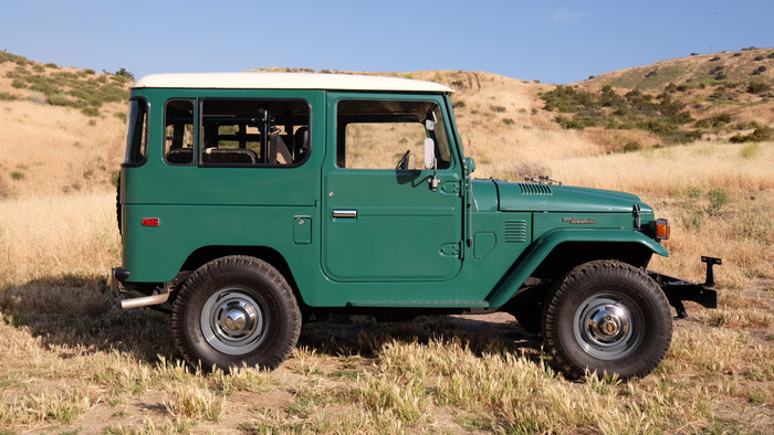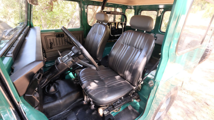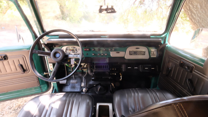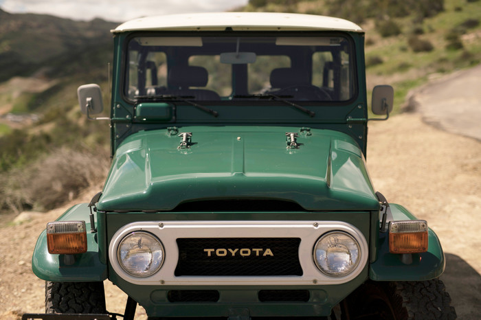 Toyota FJ40 прошла полное техническое обслуживание. Дополнительно на нее установили кондиционер и новые уплотнители для жесткой крыши. На внедорожнике сохранилась оригинальная зеленая краска без каких-либо следов ржавчины, эмблемы, декоративные элементы кузова.
