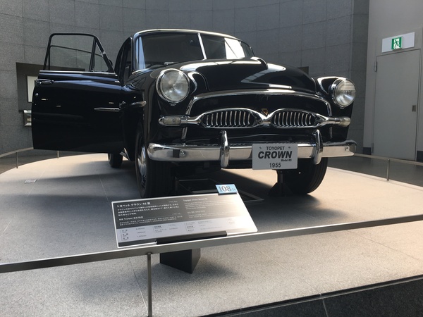 Билет за 500 йен и все залы в вашем распоряжении. Если приехать с утра пораньше, то можно получить памятный бонус. Нам достались значки с олдовым Cadillac Series 452A. Обратите внимание. Машина, что встречает вас на входе - именно Toyoda. Первая крупносерийная модель для людей.