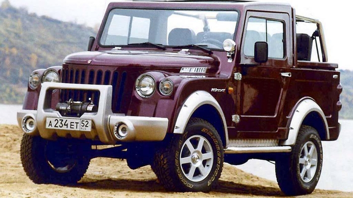 В 2004 году уже был готов первый "живой" тестовый образец и даже названа примерная начальная цена ($10 000 — 12 000). Планы опять были большие: кроме внедорожника, готовились пикап и шасси, на выставках показывали прототипы с удлиненной базой и даже VIP-вариант с мотором V8. Обещали дизели Steyr и Iveco, экспериментальный бензиновый "атмосферник" ЗМЗ-405 (2,46 л, 147 л.с.) и даже его турбонаддувную версию мощностью 205 л.с. В Ульяновске снова было напряглись! Но в конце 2005 года облегченно выдохнули: ГАЗ снова отказался от проекта собственного внедорожника, до которого, казалось, снова оставался всего один шаг...