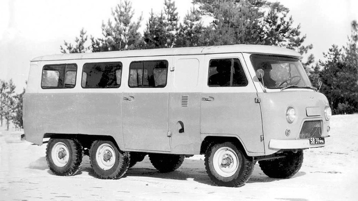 В истории УАЗа были и откровенно экзотические проекты! Например, в 1973 году появился экспериментальный 16-местный микроавтобус УАЗ-452 с колесной формулой 6х4. Был и вариант с колесной формулой 6х6, схему привода трех мостов для которого взяли у грузовика ЗиЛ-157! А чуть позже УАЗ совместно с НАМИ сделали еще и бортовой грузовик УАЗ-452ДГ 6х6 грузоподъемностью 2 тонны.