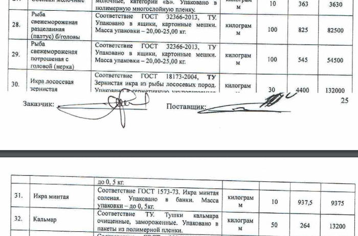 В закупку входит не только бакалея, овощи и фрукты, но и морепродукты, на примере которых видно, как сильно разнятся цены на рынке и у ведомственного поставщика ООО «Дружба народов».