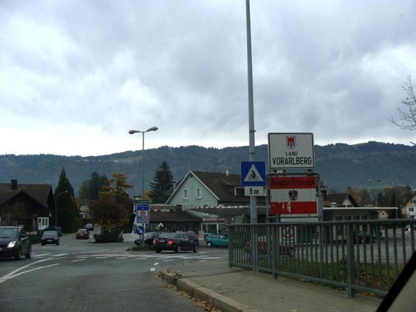Граница с Австрией. Переехал мост - и ты в Австрии. Низенький маленький домик рядом с зеленым - это таможня. Там пыльно и пусто. Чудеса Евросоюза.