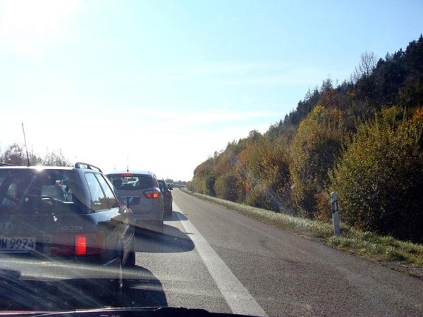 А вот это совершенно дикая для меня ситуация. На одном автобане случилась пробка из-за ремонта дороги. Машины были вынуждены перестраиваться на одну полосу движения. Поэтому пробка растянулась на километр с лишним. На фото вы видите обочину справа. Обочина с покрытием, свободная, такая очевидно манящая. И ведь ни один водитель за полчаса стояния в пробке не выехал на эту обочину и не обошел затор. Причем они так не поступали отнюдь не из-за боязни полиции. Я спросил водителя, почему он не едет справа, ведь в начале пробки наверняка пропустят? Водитель сказал, что это просто некультурно, и если он поедет, то спровоцирует других водителей и создаст пробку еще больше.