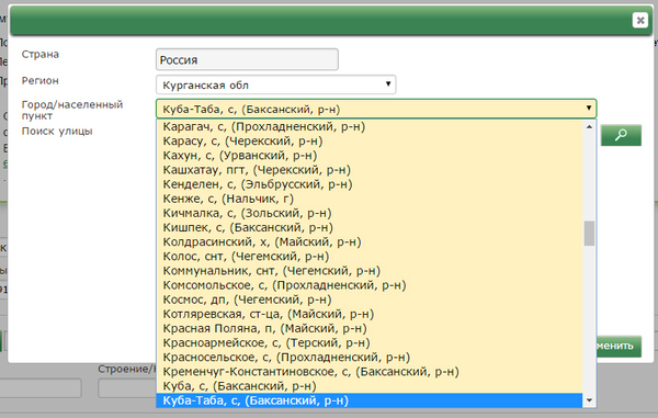 3. Банк РЕСО решил особенно не заморачиваться и просто не добавил столицу области в список населенных пунктов моего региона. Зато теперь в Курганской области появился населенный пункт Куба-Таба