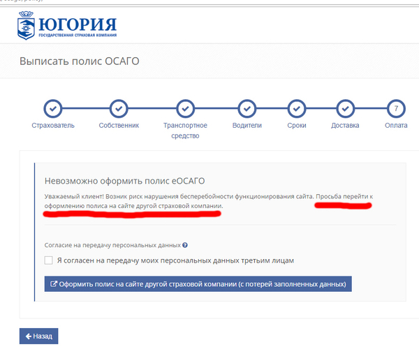 2. Банк СОГЛАСИЕ с порога выкатил ну очень вкусный, но к сожалению не вполне реальный ценник на оформление ОСАГО. Приятно, но пришлось разбираться, в чем именно косяк. Оказалось, что пункт "город" не был указан в списке обязательных (*) на заполнение и мной заполнен не был. Не найдя города, банк решил, что живу я в чистом поле на такой-то улице и предложил мне районный коэффициент.