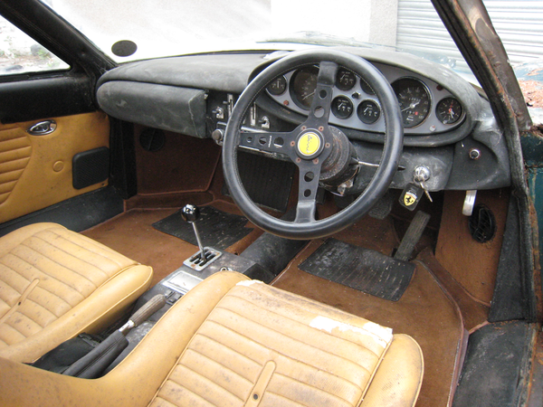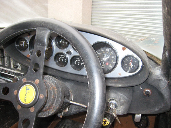 Машина стояла в гараже в течение еще 40 лет, пока снова не увидела дневной свет. Как и следовало ожидать, шанс найти Феррари Дино с маленьким пробегом, редкими опциями, да еще с интересной историей и быть в идеальном состоянии за все это время, слишком мал, скорее даже практически нереален. Протекающая крыша гаража, привела к тому, что автомобиль серьезно пострадал от постоянных водных процедур. В любом случае он нуждается в полной реставрации.