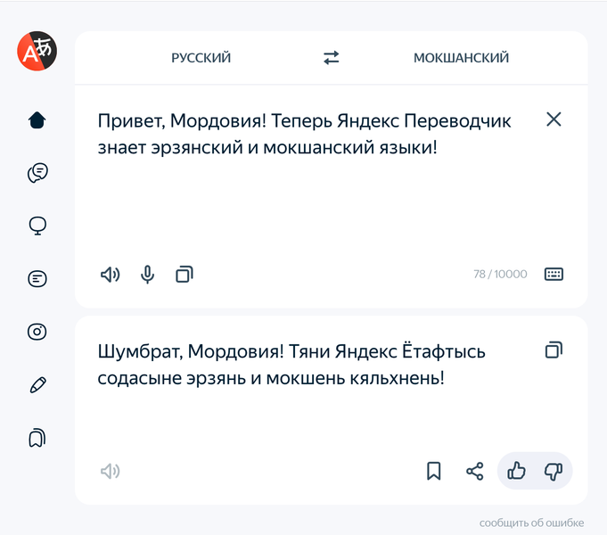 Команда Яндекса сообщила о расширении языкового охвата фирменного переводчика. Теперь пользователям «Яндекс Переводчика» доступны два мордовских языка — эрзянский и мокшанский. Они появились на сайте и в приложении «Переводчика», а также в поиске.