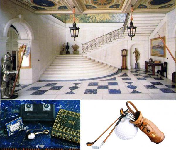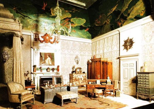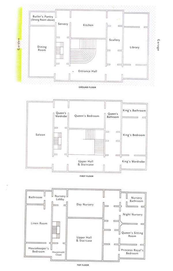 На письменном столе в библиотеке — красивая серебряная чернильница, которая используется Его Величеством. Ручки, пресс-папье, справочники, «Рафаэль Tuck» календарь, чековые книжки — все, что необходимо для Королевских потребностей, не забыта даже корзина для бумажного мусора.