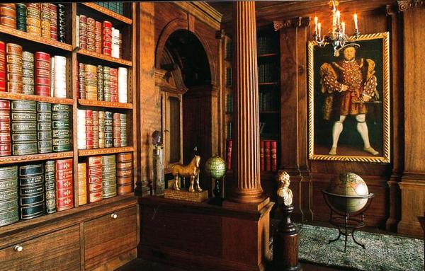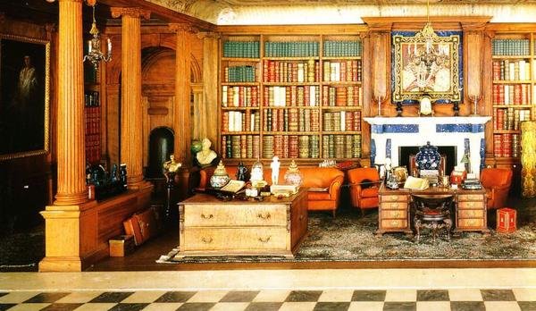 большая библиотека, с мраморным камином, изумительной деревянной отделкой и огромным количеством миниатюрных книг.