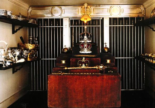 Комната Королевских Регалий скрывает в своих недрах за частой стальной решеткой скипетр и другие символические эмблемы и регалии. Здесь хранятся корона Короля и корона Королевы, инкрустированные настоящими крошечными драгоценными камнями. Эти прекрасные миниатюры являются точными копиями реальных корон, хранившихся в Тауэре. Также здесь есть копии с сокровищ Короны: такие сокровища как рубин Черного Принца, сапфир Эдуарда Исповедника и огромный алмаз Кохинор, выполнены в точных пропорциях 1:12. Также здесь хранится драгоценная серебряная и золотая утварь.