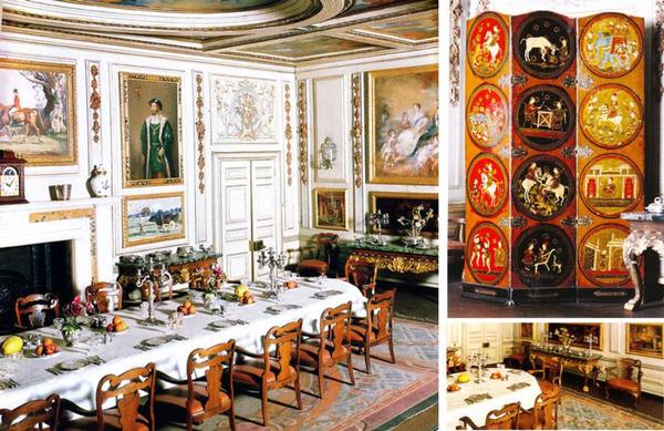 столовой стоит стол, который раскладывается, в разложенном виде его длина 50 сантиметров (20 дюймов), за ним помещается 14 посадочных мест. В столовой много элементов в китайском стиле, в частности, расписанная в ручную китайская ширма. Роскошные росписи украшают потолок, портреты королей и картины выдающихся художников в миниатюре украшают стены. Стол сервирован для званого обеда с белоснежной скатертью и полностью оборудован — цветы и фрукты, фарфор, столовые приборы, серебряные канделябры — все это выполнено до мельчайших деталей. Здесь же расположен буфет с прекрасным китайским фарфоровым сервизом и серебряными подносами.