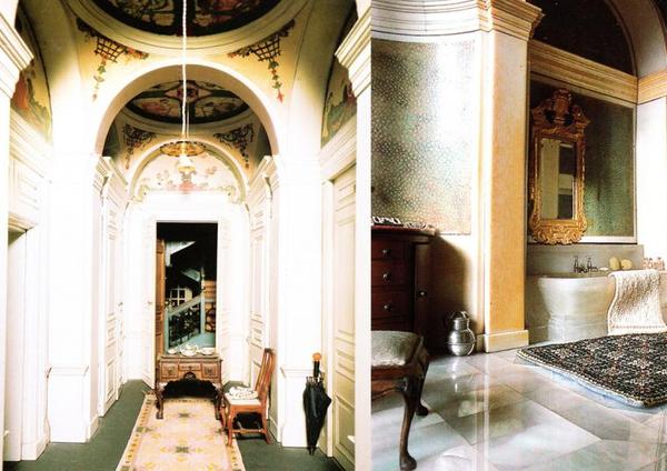 Ванная комната Ее Величества оформлена шагренью и слоновой костью. Фрагмент ванной комнаты и гардеробная Королевы.