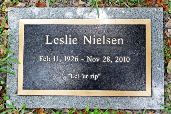 Эпитафия Лесли Нильсена, популярного канадского и американского комедийного актёра, появившегося более чем в 100 фильмах и 150 телепередачах. Его последняя шутка: «Не держи в себе».