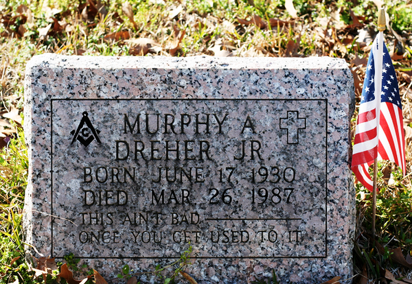 Некоторые люди остаются оптимистами даже после смерти. Как, например, Мёрфи Дреер-младший. Надпись на его надгробии: «Это не так уж плохо, когда привыкнешь».