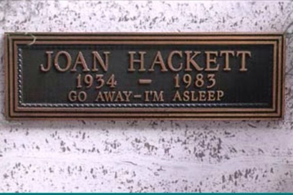 Американская актриса Джоан Хакетт похоронена в Голливуде, где на её могильной плите выгравировано: «Уходите, я сплю» (Джоан любила поспать днём).