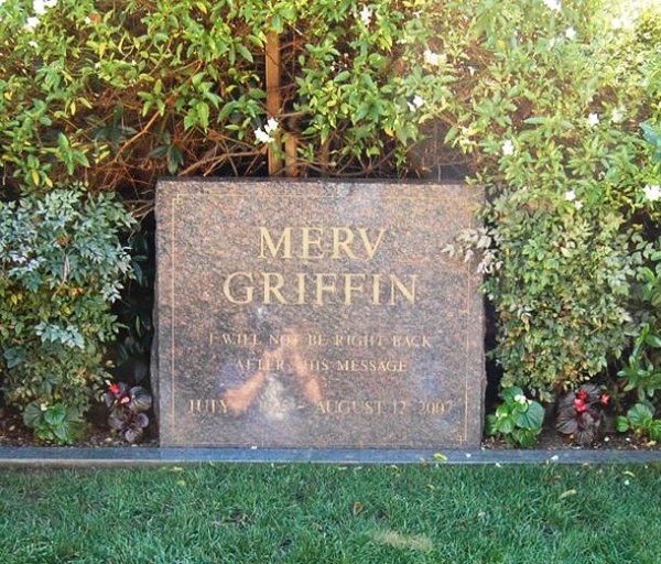 Мерв Гриффин, похороненный в Лос-Анжделесе, выбрал в качестве эпитафии фразу «Я не вернусь после этого сообщения».