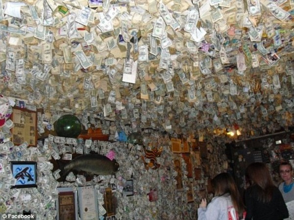 На протяжении многих лет гости ресторанчика "Fat Smitty’s" оставляли долларовые банкноты на стенах и потолке. В результате, когда хозяин ресторанчика решил сделать уборку, то он собрал 10 316 долларов, которые пошли на благотворительность.