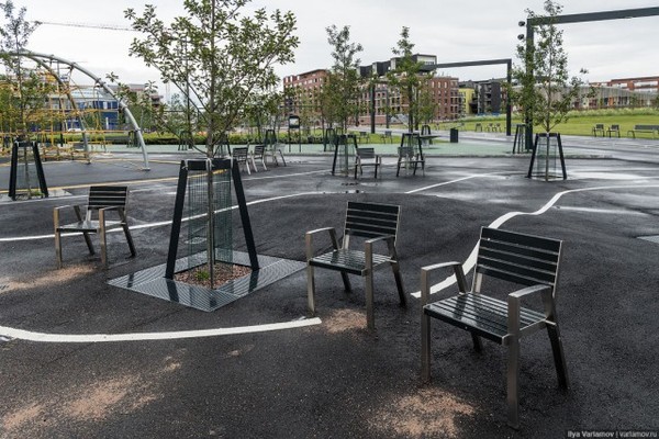 Обратите внимание на детали. Повсюду стульчики, на площадке сделан искусственный рельеф.