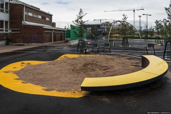 Вот так строят в новых районах Хельсинки. Дворы и жилые кварталы выглядят, конечно, очень круто, особенно по сравнению с тем, что строят у нас. Но не менее важны детали! Вот, например, обычное дело — утилизация мусора в районе. Как это происходит у нас? Самый плохой вариант – это устаревшие контейнеры, которые стоят около домов. В лучшем случае у нас установят подземные контейнеры для сбора отходов – это уже лучше, особенно если правильно их эксплуатировать.