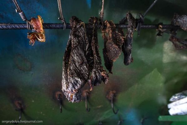 Кухня у них на улице под навесом. Зимой закрывают проход одеялом и внутри становится тепло от печки: