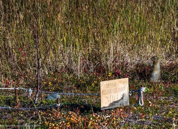 Фаина рассказала о деревце, которое они посадили рядом со своим домом. Обнесли его веревочным забором и сделали табличку: "Особо охраняемая зона". Приглядитесь к фотографии. Рядом с этим деревом живет евражка и часто стоит рядом с табличкой, словно часовой: