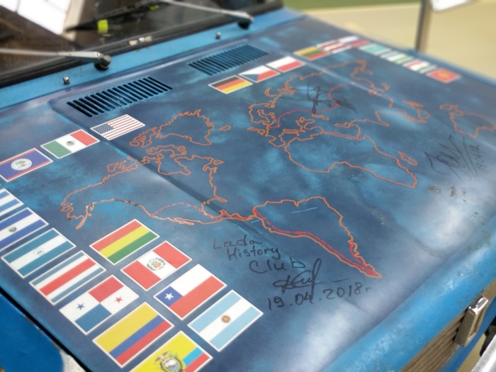 ВАЗ 2101, совершивший кругосветное путешествие, преодолев 48500 км, 26 границ. Проехал гражданин Чехии, Петра Явурека.