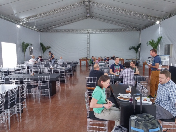Завтраки в шатре а улице, сейчас людей мало, но боюсь будет толкучка и очереди, когда начнутся игры! Столы тоже кое как собраны, сами столешницы не прикручены вообще.