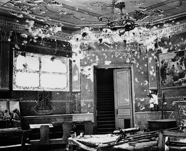 Декабрьское восстание в Москве. Одна из комнат училища Фидлера после артобстрела