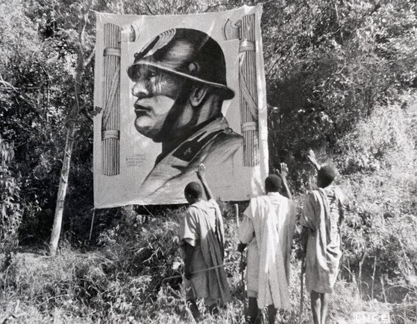 Жители Аддис Абебы салютуют изображению Муссолини, 1936 год. (Эфиопия была тогда под властью Италии).
