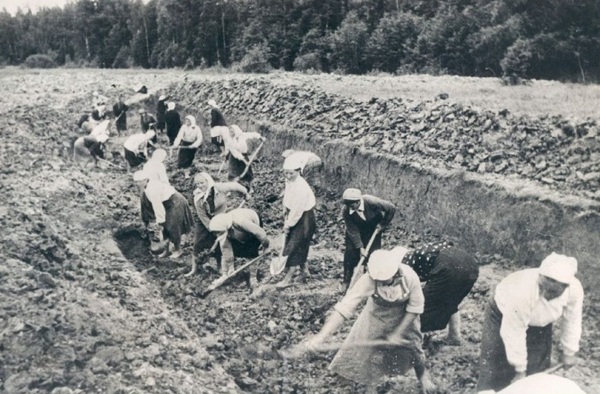 Немецкие солдаты вытаскивают машину из распутицы, 1941 год