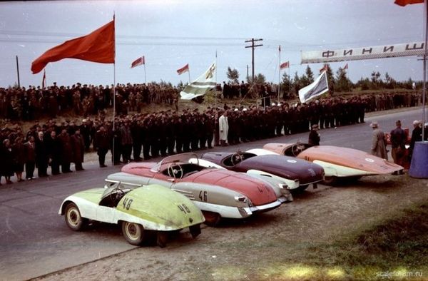 Команды ДСО «Торпедо» и «Буревестник» на церемонии открытия второго чемпионата СССР по кольцевым гонкам 7 сентября 1956 г., СССР