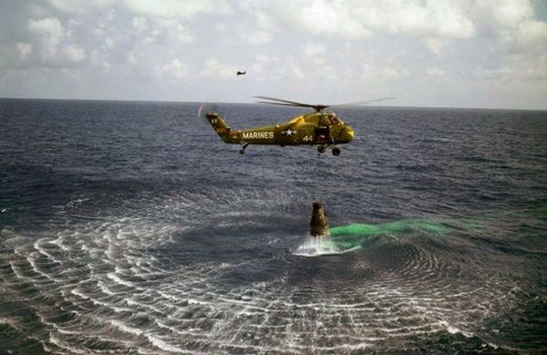 Подъем капсулы с астронавтом Аланом Шепардом после приземления в Атлантическом океане, 5 мая 1961 года, США
