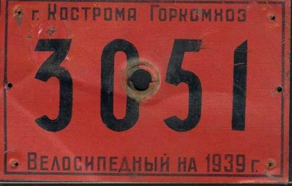 Велосипедный номерной знак, 1939 год, Кострома, СССР