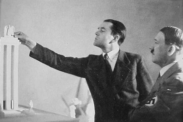 Альберт Шпеер показывает Адольфу Гитлеру макет павильона Германии для Всемирной выставки в Париже, 1930-е годы, Третий Рейх