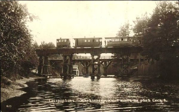 Пригородный поезд на мосту, 1900-е годы, Сестрорецк