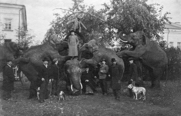 Слоны известных циркачей братьев Никитиных на прогулке, 1900–е годы, парк у Чёрного озера, Казань