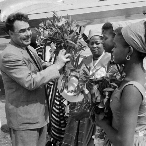 Брежнев во время встречи на аэродроме Конакри, 1961 год, Гвинея