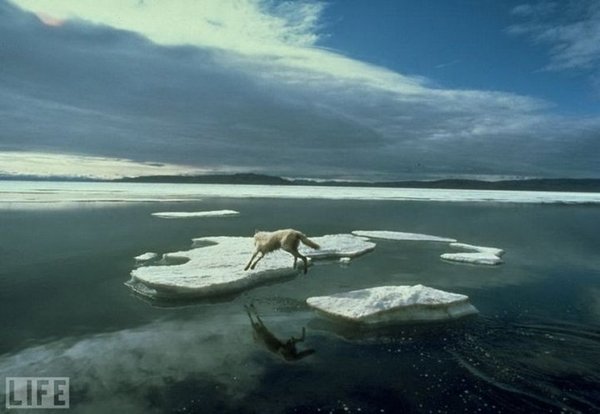 Прыжок одинокого волка (A Wolf’s Lonely Leap). Photo by Jim Brandenburg, 1986 г.