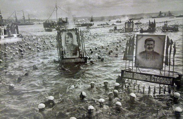 Мария Гавриш (слева) поздравляет Елену Коваленко, которая победила ее во время соревнования по плаванию брассом на Спартакиаде народов СССР в Москве, 1956 год