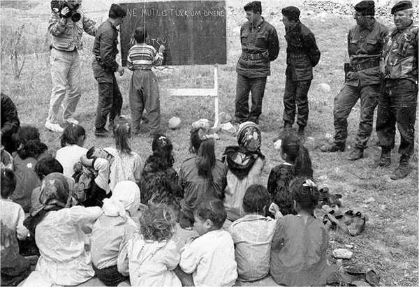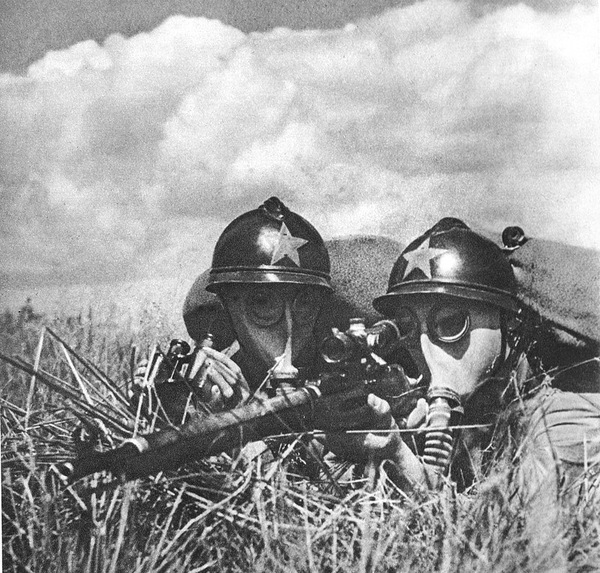 Девушка прячется за статуей, в нескольких метрах от неё лежит раненый снайпером Чарльзом Уитманом человек. Уитмен забаррикадировался на самом верху 27-этажной башни Техасского университета и в течение полутора часов стрелял из винтовки с оптическим прицелом
