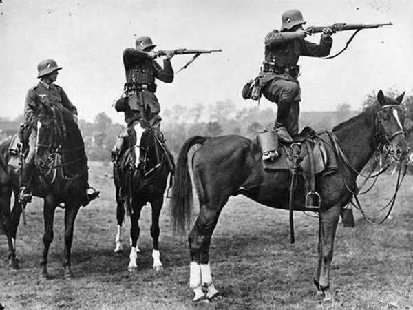 Воздушный стрелок поднимается к верхней крыльевой стрелковой точке немецкого бомбардировщика Zeppelin–Staaken