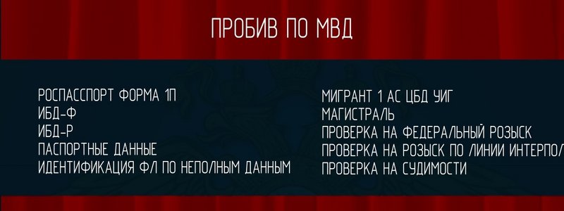 • ИБД-Ф от 1.200₽ - Наличие уголовных нарушений, паспортные данные, судимости, розыск местный, федеральный.