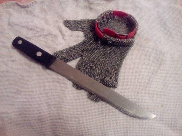 Зашел на кухню, первое что бросилось в глаза - кусок доски, висящий на стене, и торчащие из него совсем не кухонные ножи. Мне сразу вспомнился старый фильм "Захват", где Стивен Сигал играл повара, так же метавшего ножи.