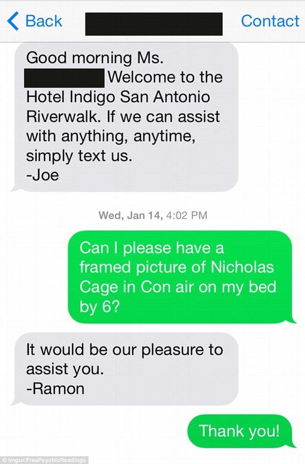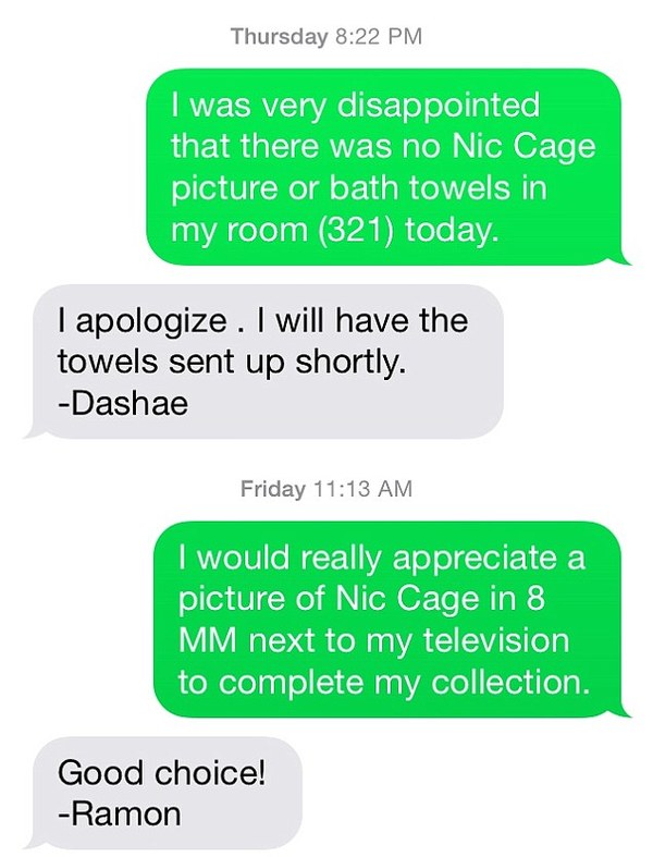 "Я расстроена отсутствием Ника Кейджа и полотенец в моем номере (321)"