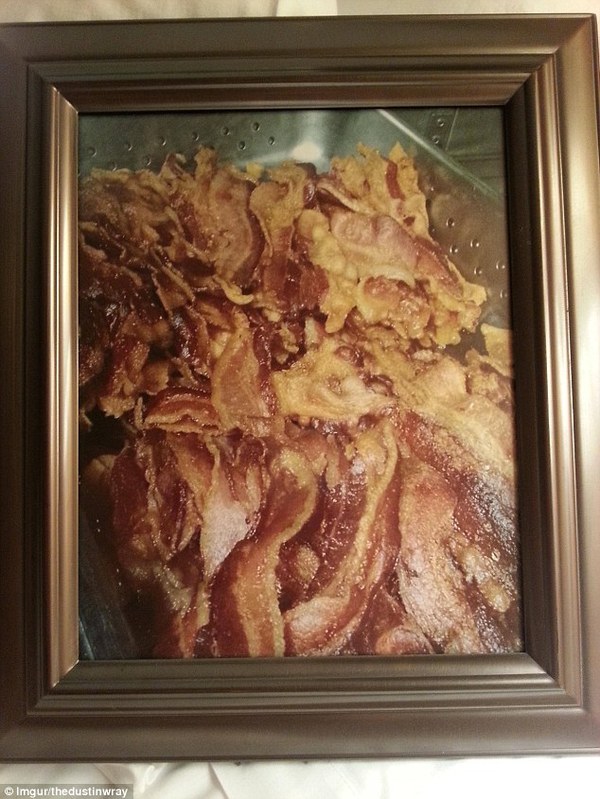"Три красных M&M'синки на столе. Не пачки, а просто три отдельных M&M'синки. Одну мне, одну моей подруге и третью мы поделим, если проголодаемся в ночи. И фото бекона на кровати. Я люблю фото бекона".