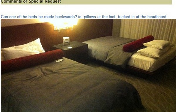 "Можно одну из кроватей заправить задом-наперед? То есть, что бы были в ногах?"