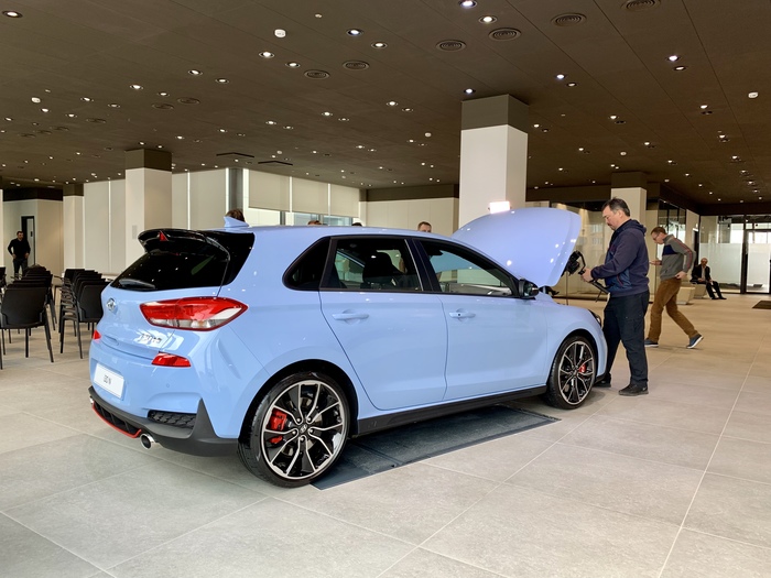 Прошу любить и жаловать: спортивный хот-хетч на переднем приводе с механической коробкой передач (позже будет и автомат), мощностью 249 и 275 сил с достаточно нелепым названием i30N.