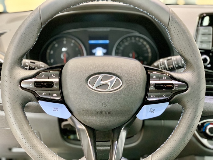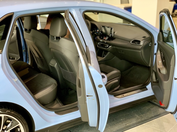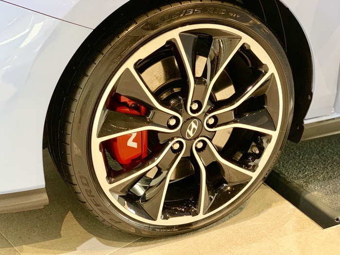 Более заряженная версия 275 сил будет отличаться наличием дифференциала повышенного трения с электронным управлением, регулировкой громкости выхлопной системы, более мощными тормозами, обивка сидений будет уже из кожи и алькантары, и 19-дюймовые колеса с покрышками Пирелли, которые были созданы шинным гигантом специально для i30N.